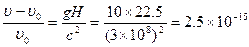 5、简答题 1961年有人从高度H=22.5m的大楼上向地面发射频率为υ0的光子,并在地面上测量接收到的频率为υ,测得υ与υ0不同,与理论预计一致,试从理论上求出