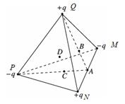 本题解析:四个顶点分别标注为 ,A.B.C.D三点都位于M和N的中垂面上,由于M和N是两个等量异种点电荷,所以M和N在A.B.C.D的电势相等;A.D两点在P和Q的中垂面上,P和Q是等量异种点电荷,所以中垂线电势相等,所以