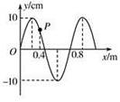 4、计算题 机械横波某时刻的波形图如图所示,波沿x轴正方向传播,质点P的横坐标x=0.32m.从此时刻开始计时.