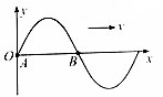 2、选择题  位于坐标原点处的波源A沿y轴做简谐运动。A刚好完成一次全振动时,在介质中形成简谐横波的波形如图所示。B是沿波传播方向上介质的一个质点,则