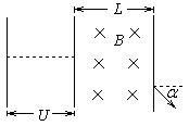 2、计算题 (8分)电视机显像管简单原理如图所示,初速度不计的电子经加速电场加速后进入有限边界宽度为L的匀强磁场,磁感应强度为B,如要求电子束偏转角为,求加速电场的电势差U。(已知电子电量为e,质量为m)