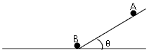 4、计算题 如图所示,在倾角为θ的光滑斜面顶端有一质点A自静止开始自由下滑,同时另一质点B自静止开始由斜面底端向左以恒定加速度a沿光滑水平面运动,A滑下后能沿斜面底部的光滑小圆弧平稳地朝B追去,为使A能追上B,B的加速度最大值是多少?