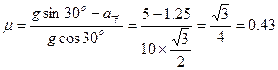 (2)一物体从斜面底端以初速v0=2m/s冲上足够长的斜面,斜面的倾斜角为q=30°,过了t=1.2s物体回到出发点。若认为毛皮产生滑动摩擦力时,动摩擦因数m为定值,g取10m/s2,则m的值为多少?