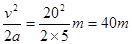4、选择题 在平直公路上以20m/s的速度行驶的汽车,遇紧急情况刹车,刹车的加速度大小为5 m/s2,则该汽车在6 s内的刹车距离为 ( )