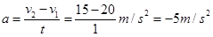 2、计算题 汽车正以20m/s的速度行驶,驾驶员突然发现前方有障碍,便立即刹车,开始做匀减速直线运动,1s后速度大小变为15m/s,求: