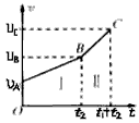 5、选择题 如图所示,一物体做加速直线运动,依次通过A、B、C 三点,B为AC的中点,物体在AB段的加速度为a1,运动时间为t1,在BC段的加速度为a2,运动时间为t2,若,则下列比较中正确的是