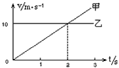 5、选择题 两个质点甲与乙,同时由同一地点向同一方向做直线运动,它们的速度一时间图象如图所示。则下列说法中正确的是