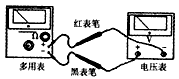 4、实验题 某同学想通过一个多用表中的欧姆挡,直接去测量某电压表(量程10 V)的内阻(大约为几十千欧),该多用表刻度盘上读出电阻刻度中间值为30,欧姆挡的选择开关拨至倍率__________挡先将红、黑表捧短接调零后,选用图中哪方式连接。