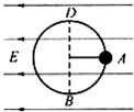 2、简答题 如图所示,竖直放置的半径为R的光滑圆环上,穿过一个绝缘小球,小球质量为m,带电量为q,整个装置置于水平向左的匀强电场中.今将小球从与环心O在同一水平线上的A点由静止释放,它刚能顺时针方向运动到环的最高点D,而速度为零,则电场强度大小为多大?小球到达最低点B时对环的压力为多大?若欲使此小球从与环心O在同一水平线上的A点开始绕环做完整的圆周运动,则小球的初动能至少为多大?
