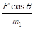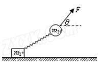5、选择题  如图,有质量分别为m1、m2的两个物体通过轻弹簧连接,在力F的作用下一起沿水平方向做匀加速直线运动(m1在光滑地面上,m2在空中)。已知力F与水平方向的夹角为θ。则m1的加速度大小为