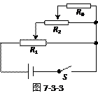 4、选择题  在许多精密的仪器中,如果需要较精确地调节某一电阻两端的电压,常常采用如图7-3-3所示的电路.通过两只滑动变阻器R1和R2对一阻值为500Ω左右的电阻R0两端进行粗调和细调.已知两个滑动变阻器的最大阻值分别为200Ω和10Ω.关于滑动变阻器R1、R2的联接关系和各自所起的作用,下列说法正确的是