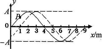 5、填空题 (4分)如图所示,一列简谐波沿x轴传播,实线为t=0时的波形图,此时P质点向y轴负方向运动,虚线为经过0.01s时第一次出现的波形图,则波沿x轴________(填“正”或“负”)方向传播,波速为________m/s.