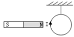 4、选择题 如图所示,一根条形磁铁水平固定放置,一环形线圈吊挂于磁铁的N极附近,当线圈中通以如图所示的电流时,从上往下看去,线圈将:(?)