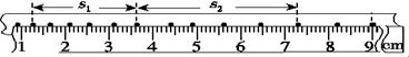 ②下图是实验小组得到的一条纸带,两个相邻计数点的间距为s1、s2。由图可读出s1=?cm,由此求得加速度的大小 a=?m/s2。(保留小数点后两位有效数字)