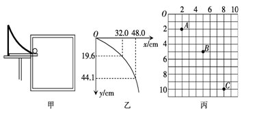 (2)在另一次实验中将白纸换成方格纸,每小格的边长L=5 cm,通过实验,记录了小球在运动途中的三个位置,如图丙所示,则该小球做平抛运动的初速度为_______m/s;B点的竖直分速度为________m/s(取g="10" m/s2).