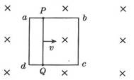 2、简答题 如图所示固定在匀强磁场中的正方形线框abcd,各边长为L,其中ab段是一段电阻为R的均匀电阻丝,其余三边均为电阻可忽略的铜线,磁场的磁感应强度为B,方向垂直纸面向里,现有一与ab段的材料、粗细、长度都相同的电阻丝PQ架在导线框上,以恒定的速度v从ad滑向bc,当PQ滑到何处时,通过PQ的电流最小?为多少?方向如何?