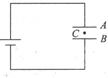 3、填空题 如图所示,平行金属板A与B相距5cm,电源电压为10v,则与A板相距1cm的C点的场强为?V/m