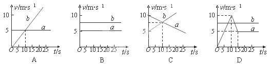3、选择题 两辆游戏赛车a、b在两条平行的直车道上行驶。t=0时两车都在同一计时线处,此时比赛开始。它们在四次比赛中的v-t图如图所示。则哪些图对应的比赛中,有一辆赛车追上了另一辆(?)