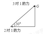 本题解析:对石料1进行受力分析得,它受到重力、2对1的水平向左的作用力、3对1的斜向上的作用力,三力平衡;现在画出这三个力的矢量图如图所示,则它们之间的关系为:
