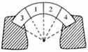 3、选择题 石拱桥是我国传统桥梁的四大基本构型之一,其中以赵州桥最为有名。某校物理课外小组为研究石拱桥所用石料间的相互作用,设计了如图所示的模型。若四块相同的石料砌成圆弧形对称结构,每块石料对应的圆心角均为30°,其中第3、4块石料固定在地面上。假定石料间的摩擦力可以忽略不计,则1对2的作用力与3对1的作用力大小之比为