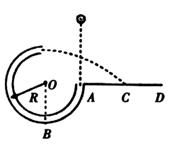 圆弧形光滑管道半径略大于小球半径,管道中心到圆心距离为R,A端与圆心O等高,AD为水平面,B端在O的正下方,小球自A点正上方由静止释放,自由下落至A点时进入管道,当小球到达B点时,管壁对小球的弹力大小为小球重力大小的9倍,求: