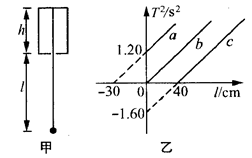 (1)如果实验中所得到的T2—l关系图象如图(乙)所示,那么该同学所画出的图象应该是a、b、c中的________________;