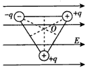 1、选择题 电量分别为+q,+q和-q的三个带电小球,固定在边长均为a的绝缘三角形框架的三个顶点处,并置于场强为E的匀强电场中,场强方向与框架在同一平面内,如图所示,若此三角形绕穿过其中心O垂直于三角形所在平面的轴顺时针转过120°,则在此过程中电场力做功的大小为