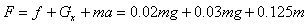 3、计算题 总重为8t的载重汽车,由静止起开上一山坡,山坡的坡度为0.02(即每前进100m,上升2m)。在行驶了100m后,汽车的速度增大到18km/h,如果摩擦阻力是车重的0.03倍,汽车上坡时的牵引力多大?