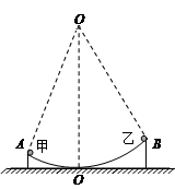 4、选择题 如图所示,一半径为R的圆弧形轨道固定在水平地面上,O为最低点,轨道末端A、B两点距离水平地面的高度分别为h和2h,h<<R。分别从A、B两点同时由静止释放甲、乙两个完全相同的小球。不计轨道与球之间的摩擦及空气阻力,不计两球碰撞过程中的机械能损失。则