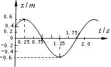 kg,弹簧的劲度系数为50N/m ,振子的振动图象如图所示,在