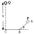 3、计算题 (10分)如图所示,物体P从光滑的斜面上的A点由静止开始运动,与此同时小球Q在C点的正上方h处自由落下,P途经斜面底端B点后以不变的速率继续在光滑的水平面上运动,在C点恰好与自由下落的小球Q相遇,已知AB=BC=l,h=4.5l,重力加速度为g,不计空气阻力,求: