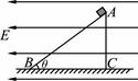 1、计算题 如图所示,在一水平向左的匀强电场中,光滑绝缘直角三角形斜劈ABC被固定在水平面上,其斜面长L=1.5m,倾角为θ=37°。有一个电荷量为q=3×10-5C、质量为m=4×10-3kg的带电小物块(可视为质点)恰能静止在斜面的顶端A处。g=10m/s2,sin37°=0.6,cos37°=0.8.求: