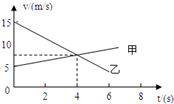 D、t=4s时,两图线相交,说明甲、乙两物体的速度相同.故D正确.