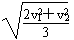 5、选择题  如图所示,木块A、B并排且固定在水平桌面上,A的长度是L,B的长度是2L,一颗子弹沿水平方向以速度v1射入A,以速度v2穿出B,子弹可视为质点,其运动视为匀变速直线运动,则子弹穿出A时的速度为