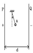 3、计算题 (12分)如图所示,竖直放置的平行板电容器P板带正电,Q板带负电,两板间距d=5cm,两板电势差UPQ=25v,一质量m=0.2kg的带电小球A用绝缘细线悬挂于极板之间,小球静止时细线与竖直方向之间的夹角α=370。(sin37?=0.6,cos37? ="0.8" ,g取10m/s2)求: