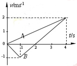 本题解析:由图看出,t=1.5s时,B正在做匀减速运动,图线的斜率为正,说明加速度沿正方向.故A正确;t=2s时,A质点运动的位移即与时间轴所包围的面积 xA=