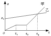 C.甲开始运动时,乙在甲的前面s0处?