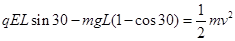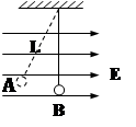 4、计算题 如图,水平匀强电场的电场强度为E,一个带电小球质量为m,轻质的绝缘细线长为L,静止时小球位于A点,细线与竖直方向成30°角, 求:
