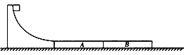 2、计算题 如图所示,某货场利用固定于地面的、半径R=l.8m的四分之一圆轨道将质量为m1=10kg的货物(可视为质点)从高处运送至地面,已知当货物由轨道顶端无初速滑下时,到达轨道底端的速度为5m/s。为避免货物与地面发生撞击,在地面上紧靠轨道依次排放两块完全相同的木板A、B,长度均为l=2m,质量均为m2=20 kg,木板上表面与轨道末端相切,货物与木板间的动摩擦因数为μ1= 0.4,木板与地面间的动摩擦因数μ2=0.1。(最大静摩擦力与滑动摩擦力大小相等,取g=10 m/s2)
