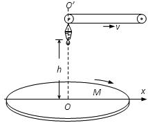 匀速转动,规定经过圆心O水平向右为x轴的正方向.在圆心O正上方距盘面高为h处有一个正在间断滴水的容器,从t=0时刻开始随传送带沿与x轴平行的方向做匀速直线运动,速度大小为