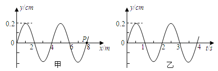 3、选择题 一简谐横波在x轴上传播,t=0时的波形如图甲所示。x=8m处质点P的振动图线如图乙所示。下列说法正确的是