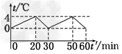 1、选择题 某厂研制的一种节能冰箱,一天的能耗只相当于一个25瓦的灯泡一天工作的能耗,如图所示为该冰箱内的温度随时间变化的图象,则该冰箱工作时的功率为