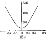 (4)某同学查阅相关资料时看到了图3所示的磁敏电阻在一定温度下的电阻一磁感应强度特性曲线(关于纵轴对称),由图线可以得到什么结论?
