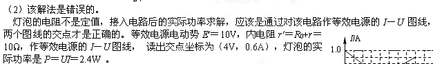 某学生的解法如下:RL=, I=,代入P=I2RL即可求出灯泡的实际功率。