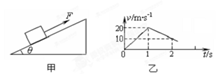 5、计算题 (10分)如图甲所示,质量为m=1kg的物体置于倾角为θ=37°的固定且足够长的斜面上,对物体施以平行于斜面向上的拉力F,t1=1s时撤去拉力,物体运动的部分v-t图象如图乙所示。试求: