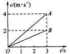 4、选择题 如图为两个物体A和B在同一直线上沿同一方向同时做匀加速运动的v-t图线,已知在第3s末两个物体在途中相遇,则物体的出发点是关系是