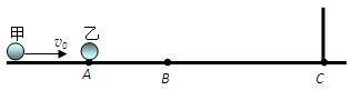 向右运动。在小球甲的前方A点处有一质量为m2的小球乙处于静止状态,如图所示。甲与乙发生正碰后均向右运动。乙被墙壁C弹回后与甲在B点相遇,