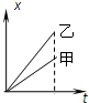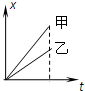 5、选择题 在运动会上,甲、乙两位同学进行百米赛跑,假如起跑加速的时间忽略,把他们的运动近似当作匀速直线运动来处理.他们同时从起跑线起跑,经过一段时间后他们的位置如右图所示,分别作出在这段时间内两人运动的位移x、速度v与时间t的关系图象如下,其中能正确反映它们运动的是( )