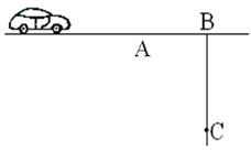 1、计算题 如图所示,AB之间的距离为80m公路上一辆汽车以速度v1=10m/s速度匀速行驶。汽车行驶至某处时,一人为搭车,从距公路30m处开始以v2=3m/s的速度正对公路匀速跑去,司机见状途中刹车,汽车做匀减速运动,结果车和人同时到达B点,车恰好停止在B点,求汽车刹车的加速度大小。(9分)