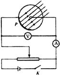 4、选择题 如图,当电键K断开时,用光子能量为2.5eV的一束光照射阴极P,发现电流表读数不为零。合上电键,调节滑线变阻器,发现当电压表读数小于0.60V时,电流表读数仍不为零;当电压表读数大于或等于0.60V时,电流表读数为零。由此可知阴极材料的逸出功为